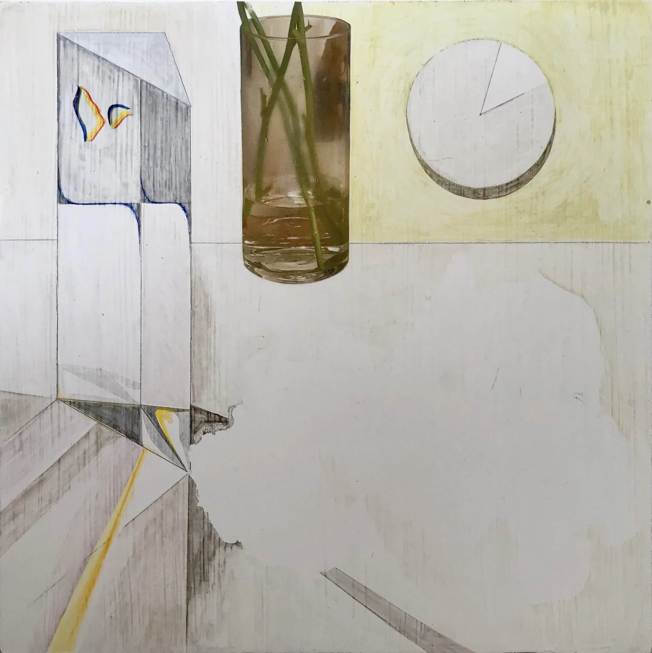 Still Life 4, 2020, Watercolour, acrylic and collage on gesso panel, 28 x 36cm