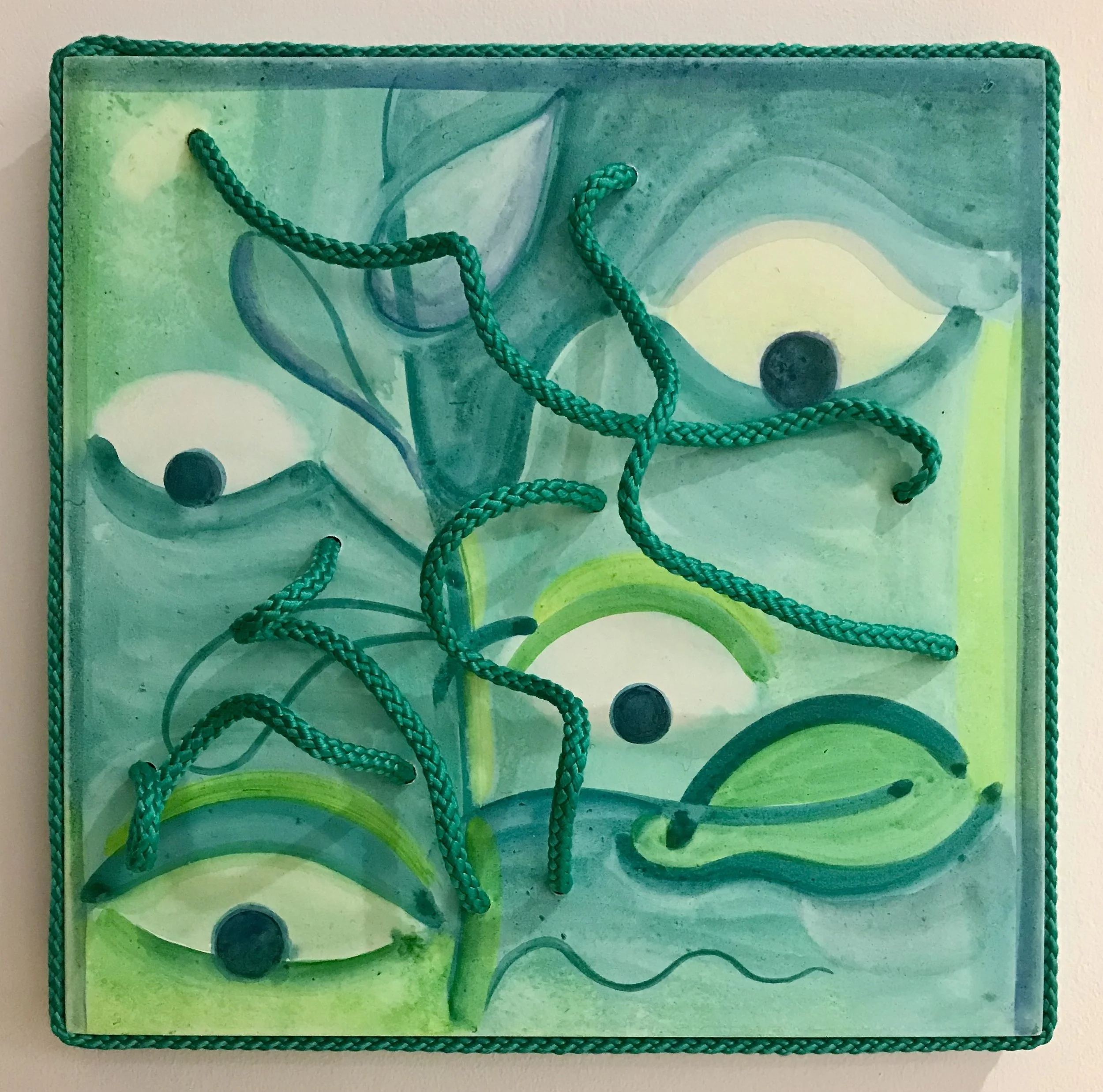 Eye Plant, 2023, Watercolour and cord on gesso panel, 21 x 21 x 2 cm